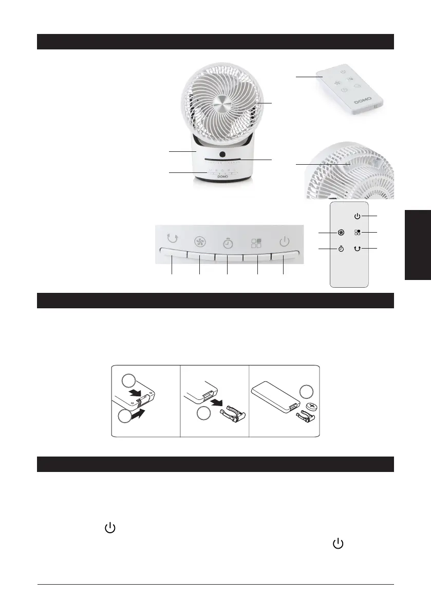 Press this button to turn the device on or o. The corresponding indicator light lights up . The fan
