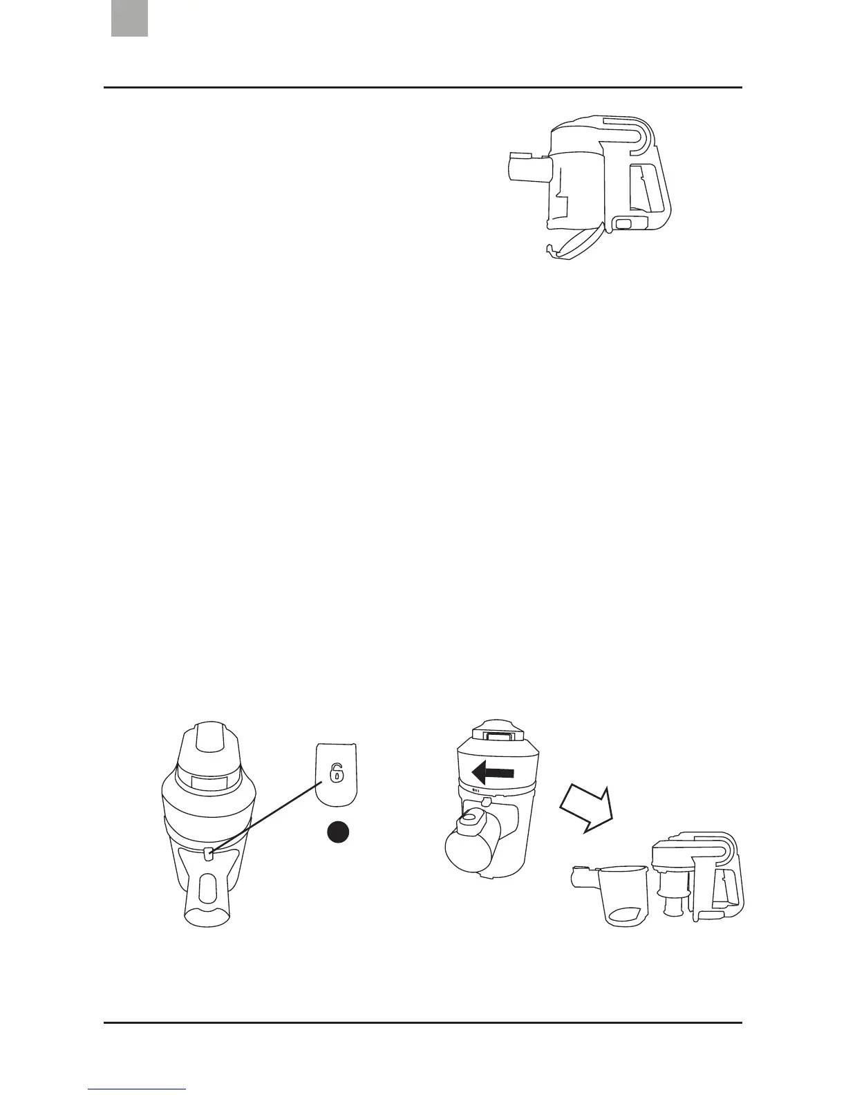 Pour nettoyer le réservoir à poussière, déverrouillez-le en appuyant