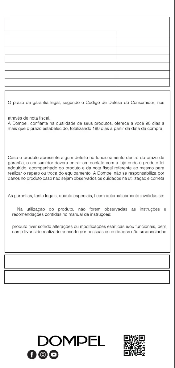 falhas no funcionamento do produto a partir da data da compra, comprovado
