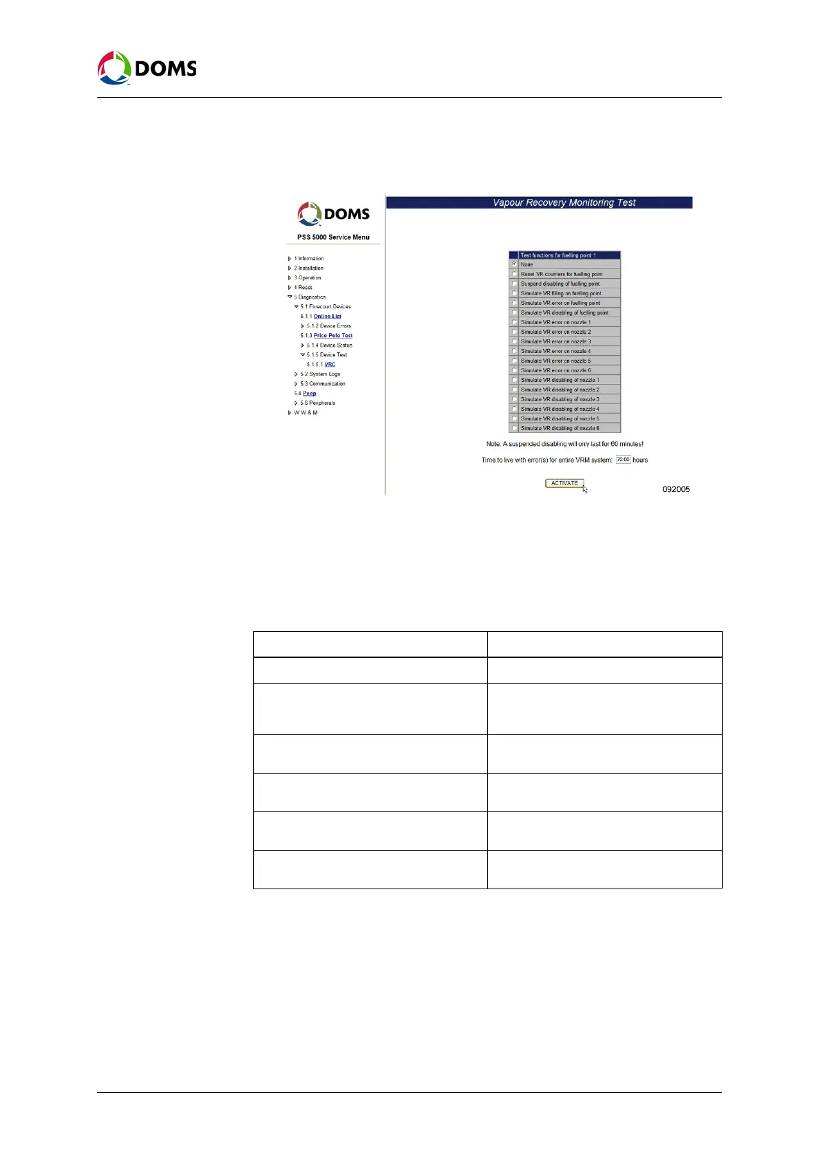 Simulate VR error on fuelling point Simulate a vapor recovery error on the