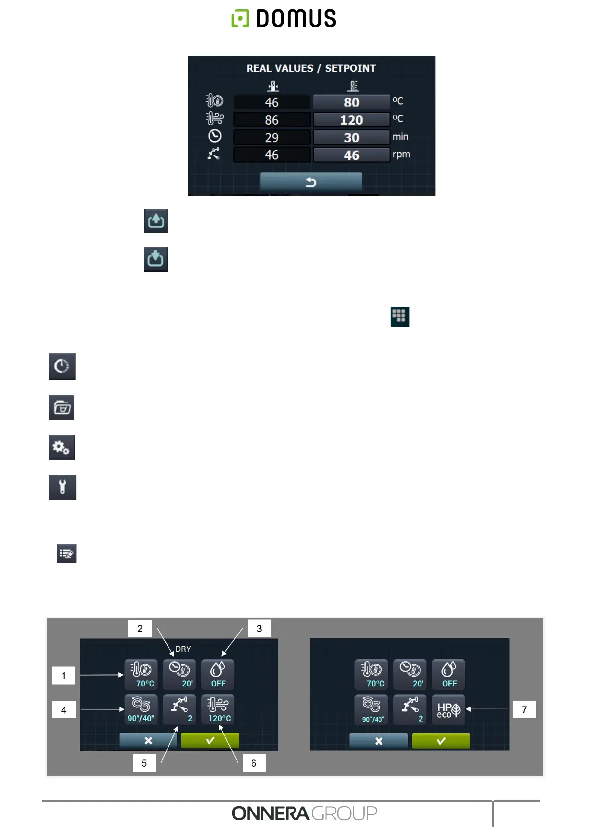 Les paramètres pouvant être programmés sont les suivants dans les phases de séchage :