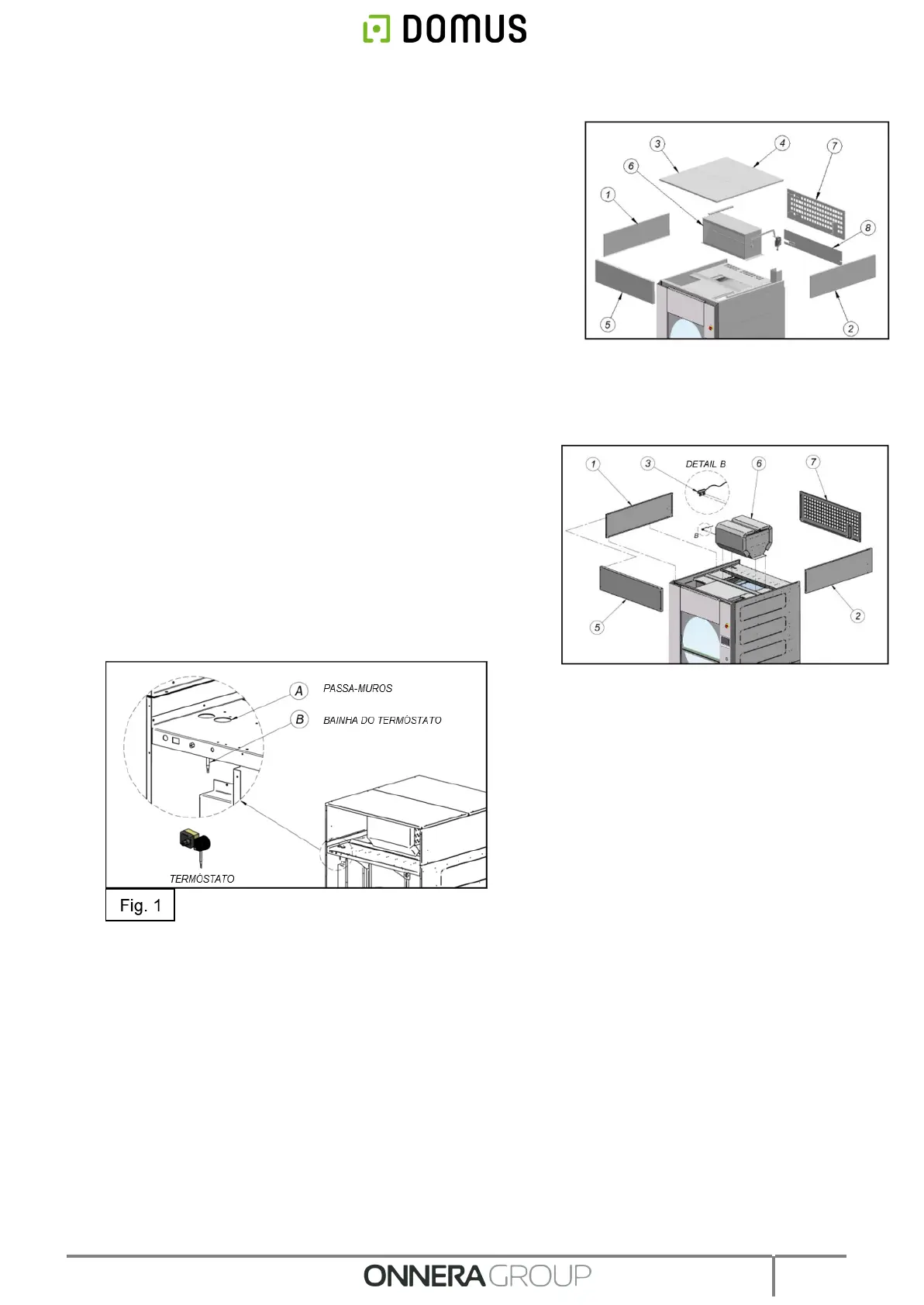 3. Passar a bainha B do termóstato pelo passa-muros A e posicioná-la com a