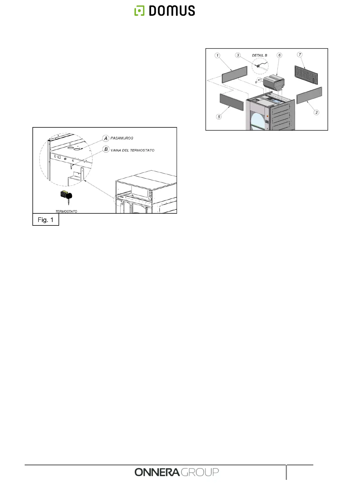 3. Pasar la vaina B del termostato por el pasamuros A y situarla
