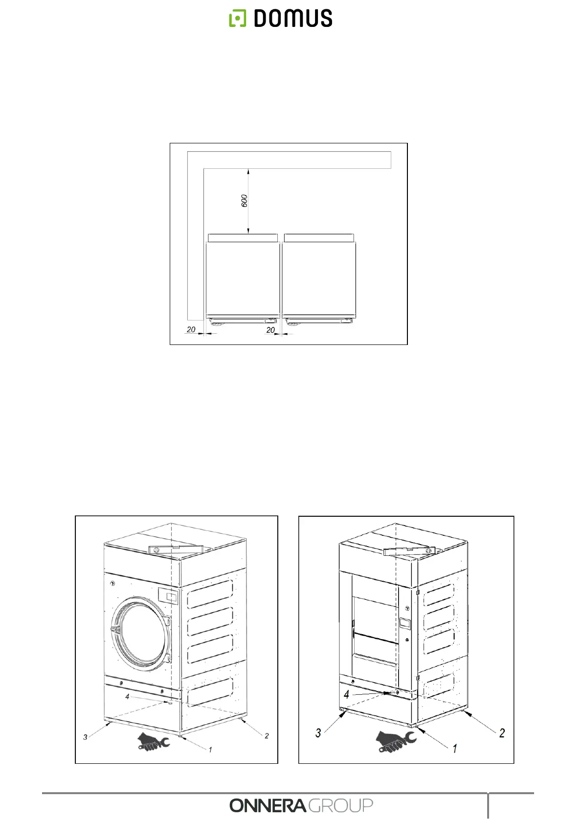 - Adjust the 4 levelling feet to ensure the stability and horizontality of the machine, checking it with a spirit