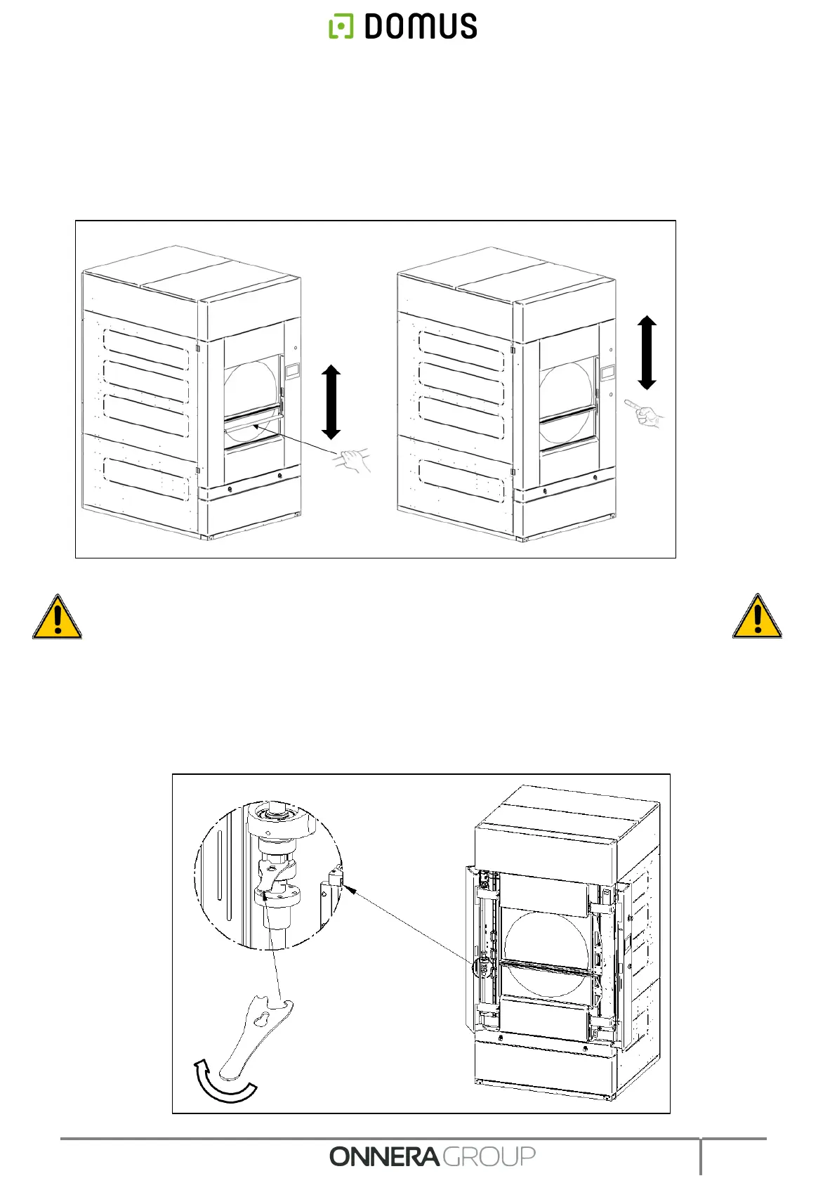 move the spindle manually and open the door. (See figure below):