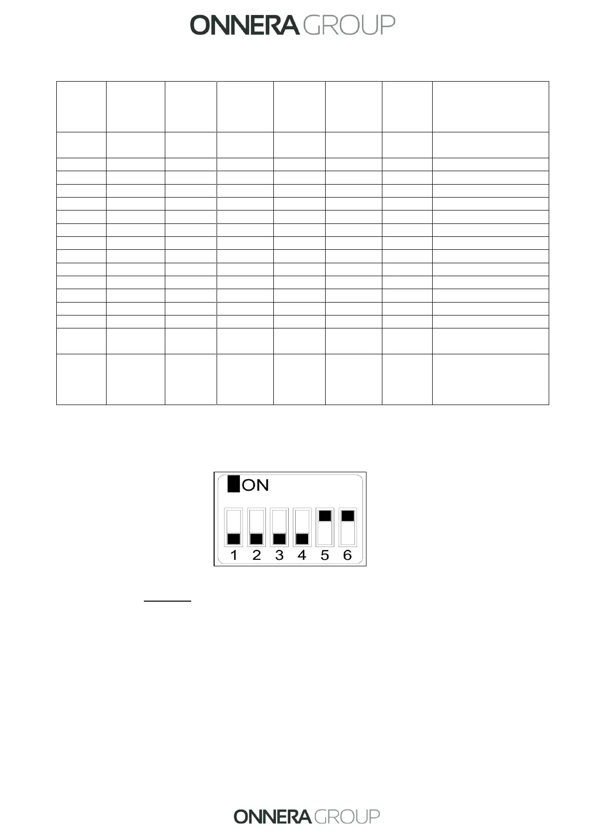 Le tableau suivant détaille la configuration en fonction de la position introduite dans le DIP switch :