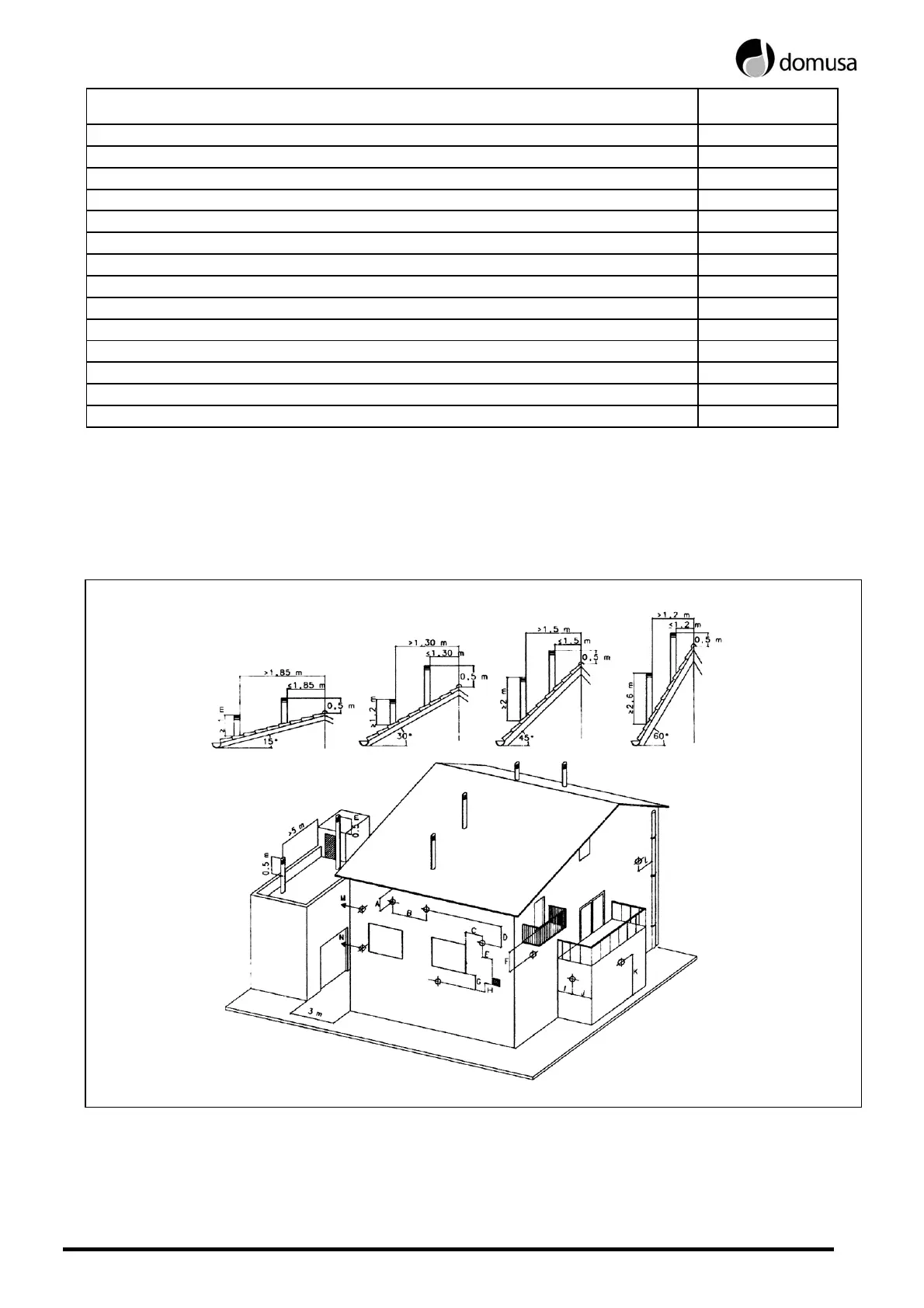 (**)If the materials from which the pipe is made are sensitive to the action of the flue gases, this distance should be