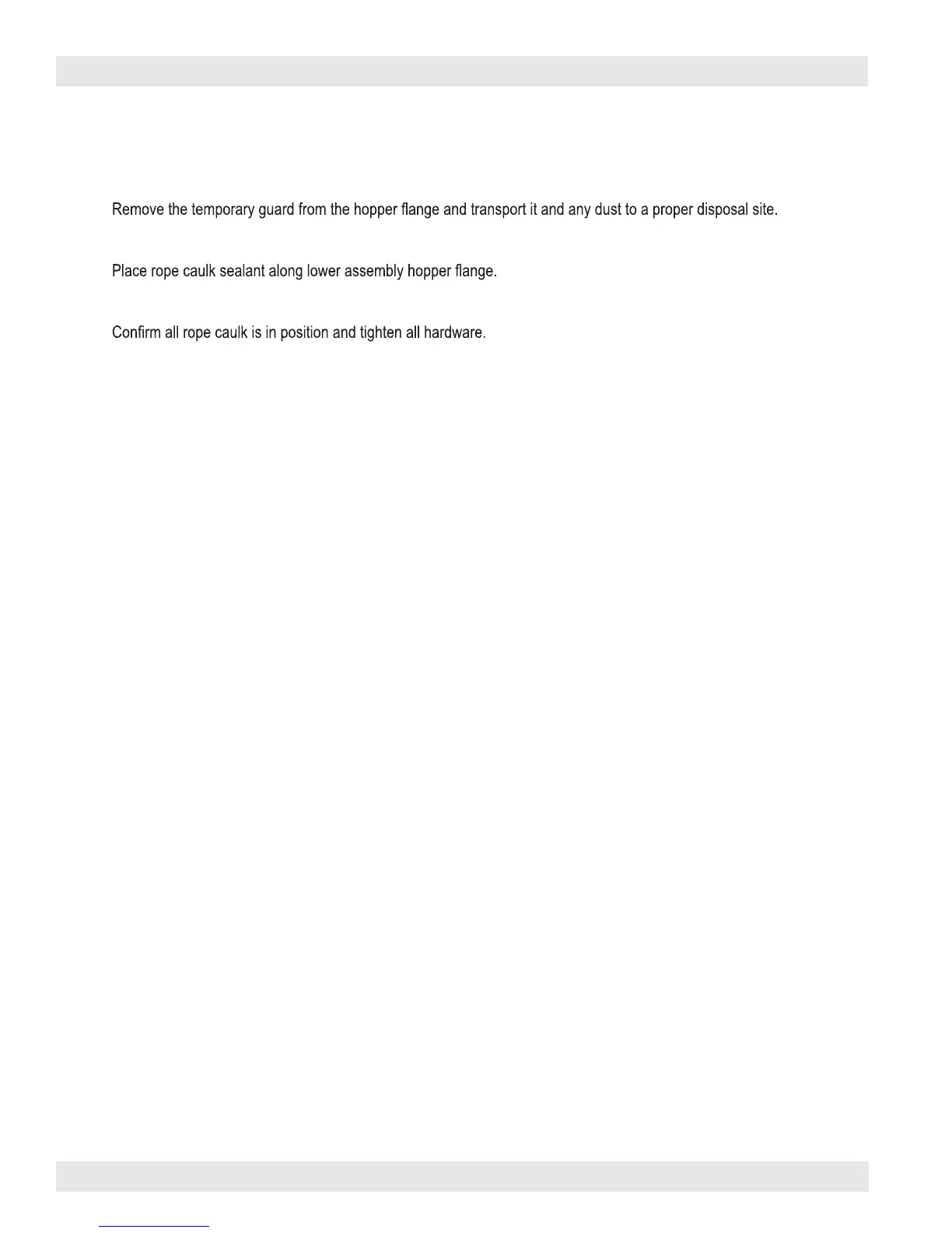 17. Position and seal dust bin to hopper.
