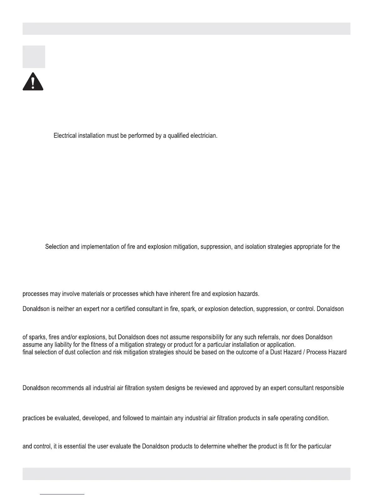 Donaldson recommends process owners consult experts in combustion risks to ensure these responsibilities are met. Some