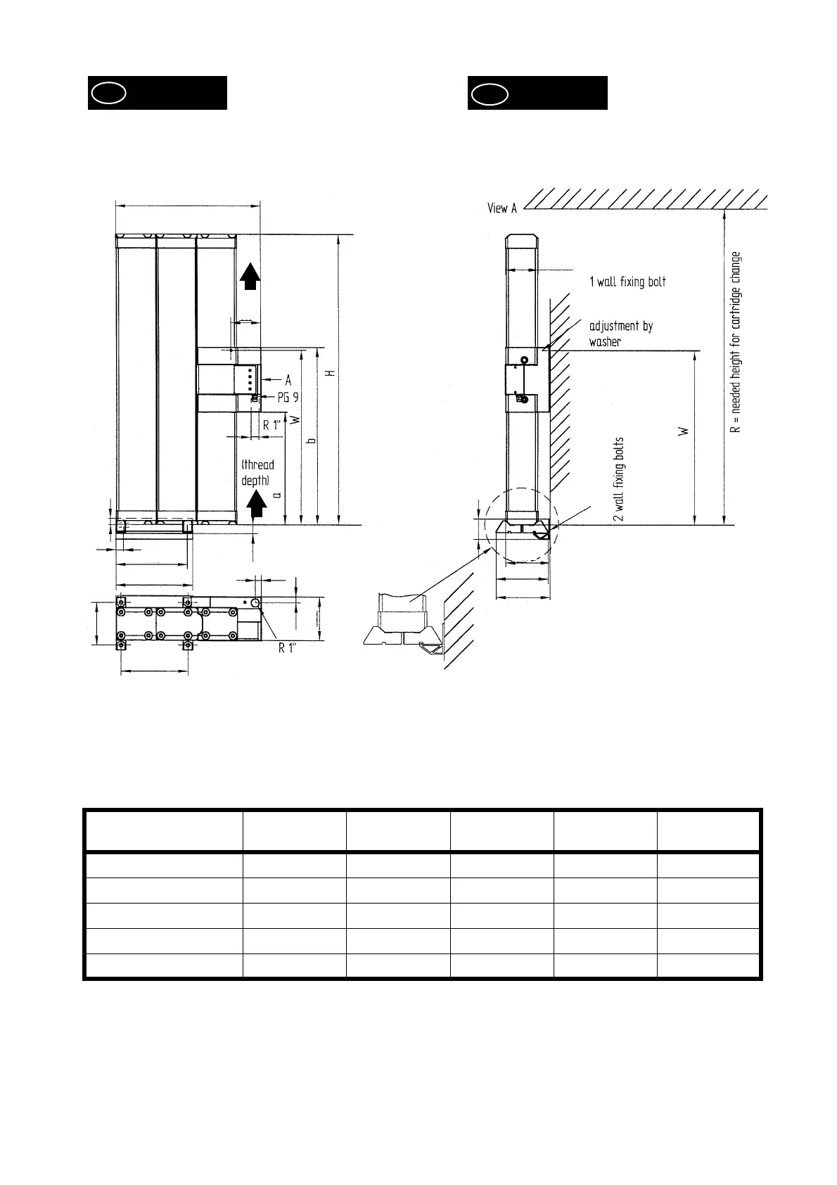 R = altura de desmontaje para cambio de cartucho