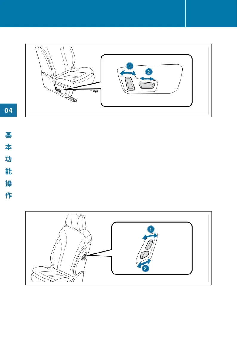 2. 座椅前后调节按键 Front and rear adjustment buttons