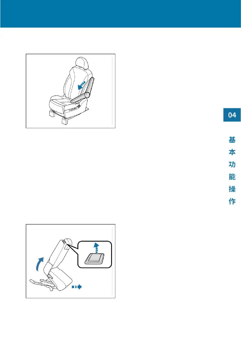 再向上拉动座椅翻折拉手,然后向前推