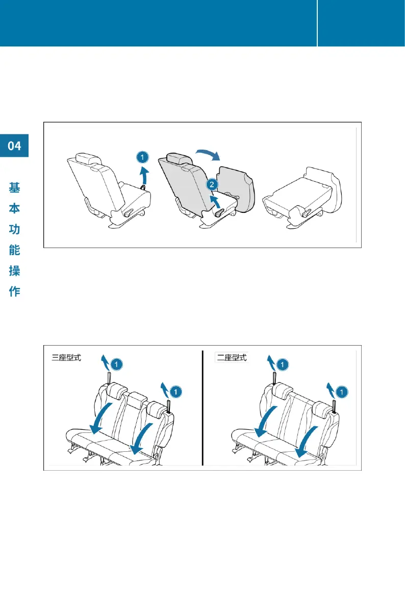 后排座椅靠背调节及放平 Rear seat back adjustment and leveling