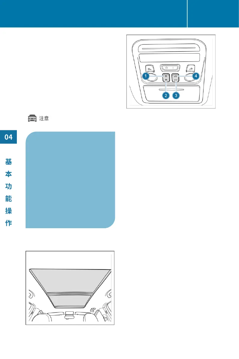 可打开遮阳帘和天窗。操作天窗时,启动