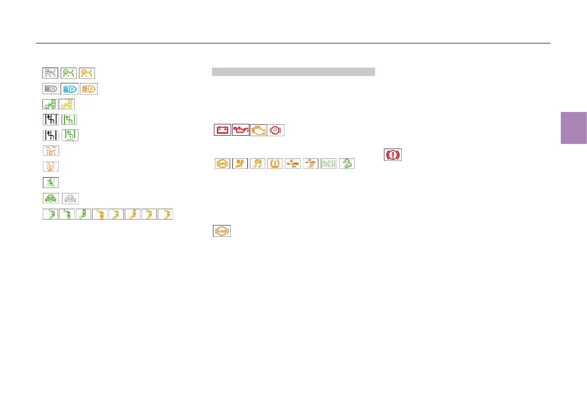 The following warning lamps and indicator lamps