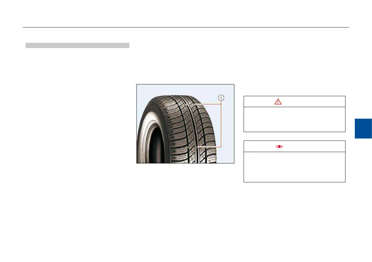Tread wear mark ① indicates the safe use limit