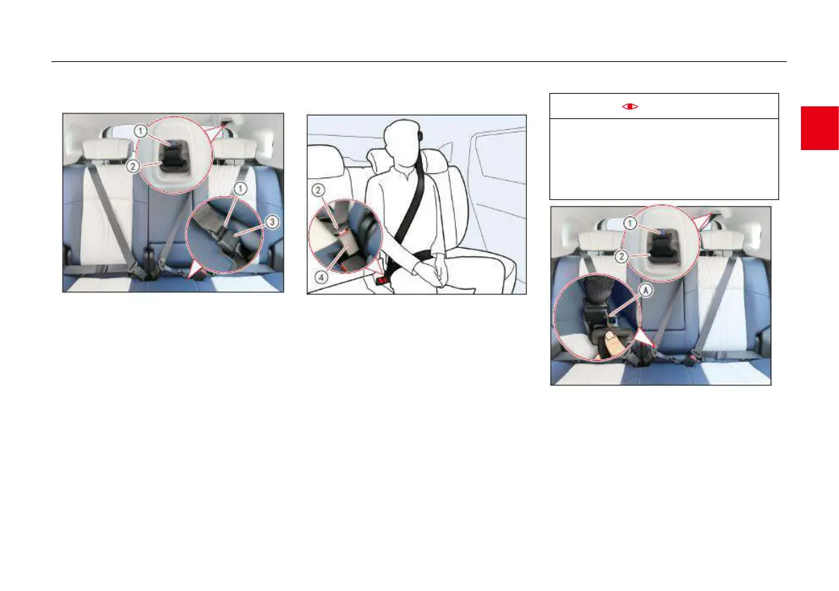 into the buckle ④ to lock the seat belt. Hold the
