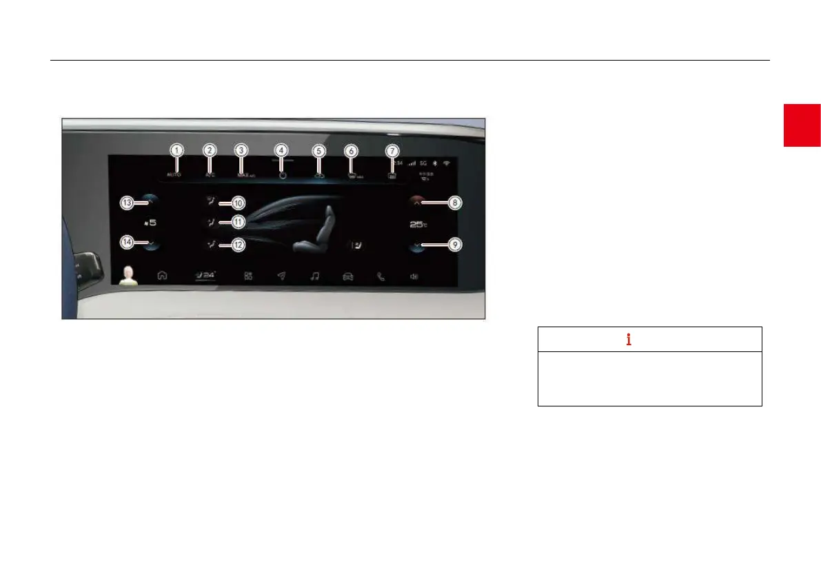 ● Click on the “Vehicle control” - “A/C” column on the MP5 display to control the A/C and view the