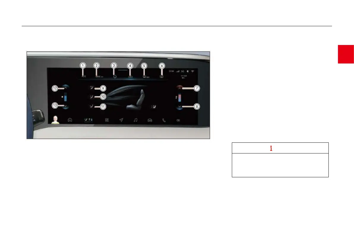 ● Click on the “Vehicle control” - “A/C” column on the MP5 display to control the A/C and view the
