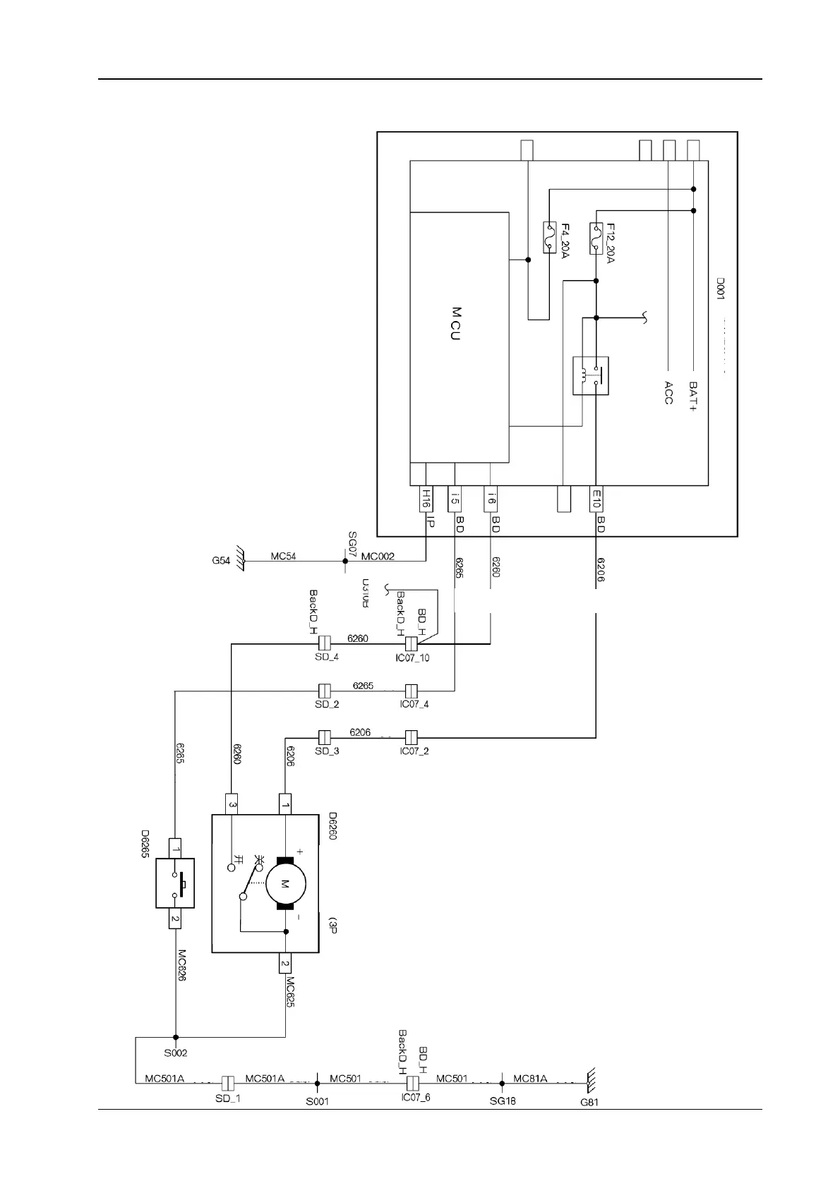 22.4 The electrical schematic diagram for the back door unlocking H30