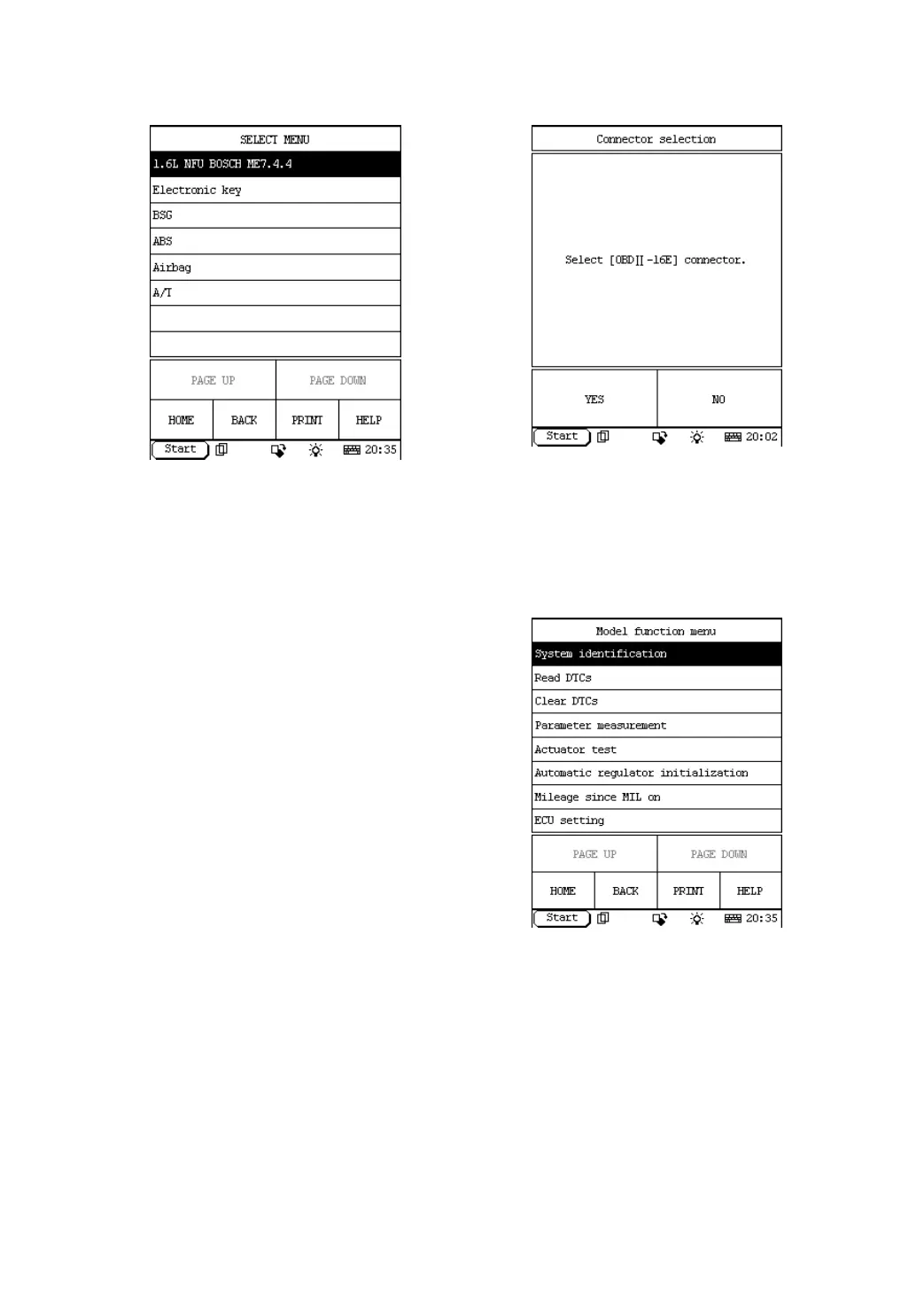 The test operation for different systems is