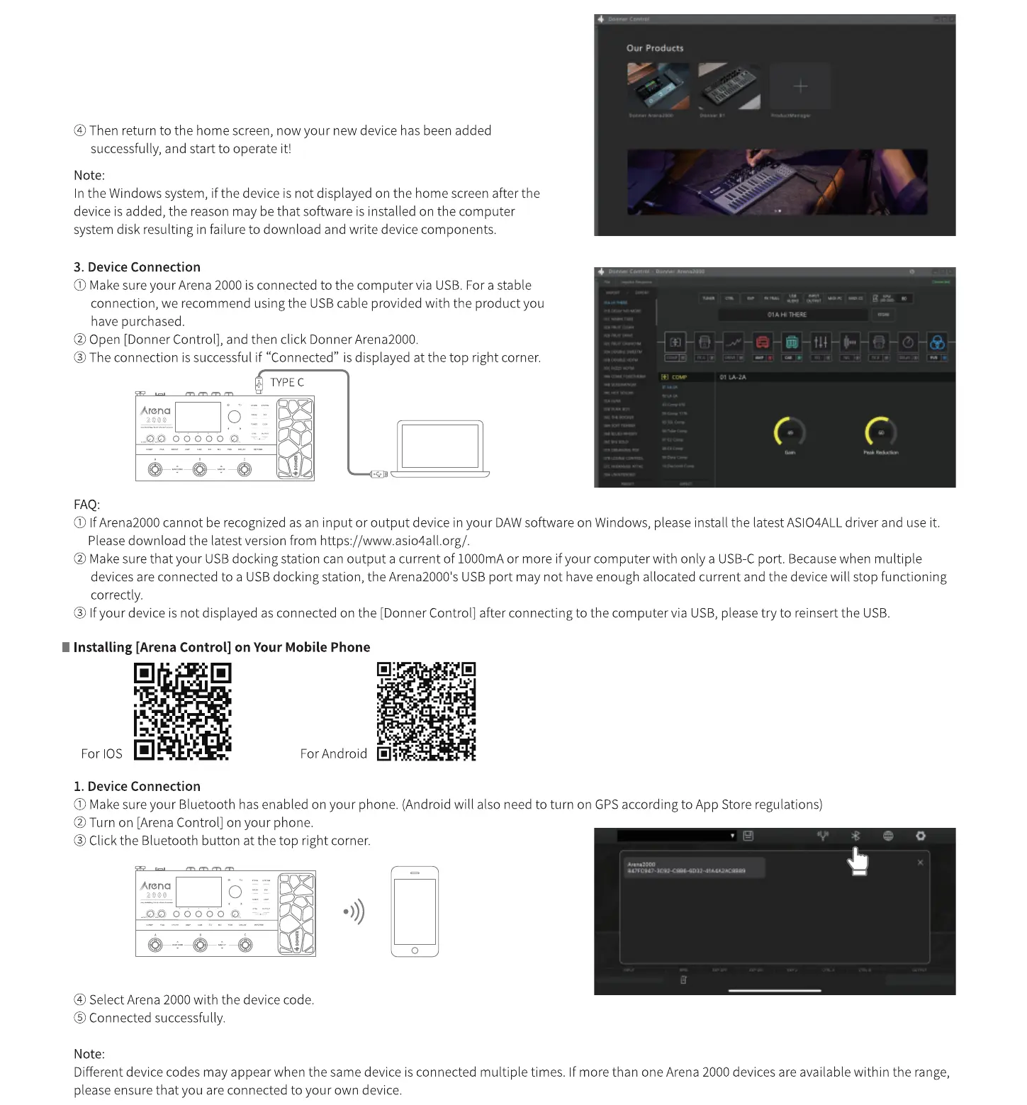 download and install [Donner Control] for PC and [Arena Control] for mobile.