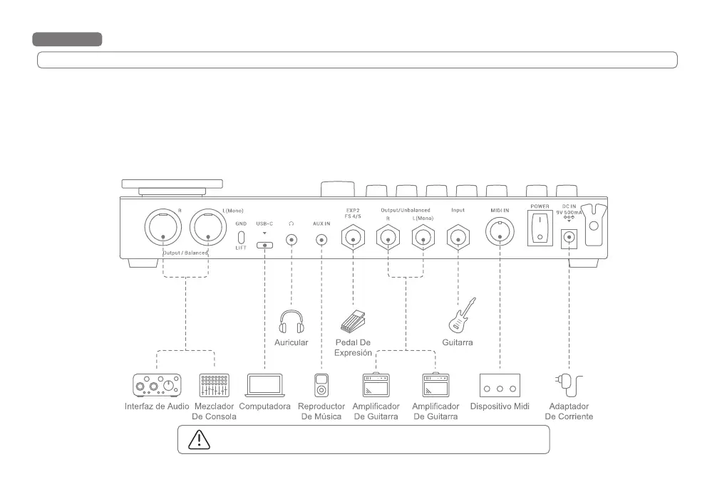 4. La entrada y la salida no balanceada L/R deben utilizar un cable de audio mono blindado con conectores de 1/4". Los cables de audio de alta calidad garantizan una