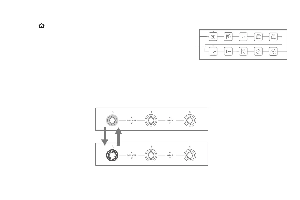 la cadena de efectos, gire la flecha pequeña por encima del módulo de efectos al que desee desplazarse.