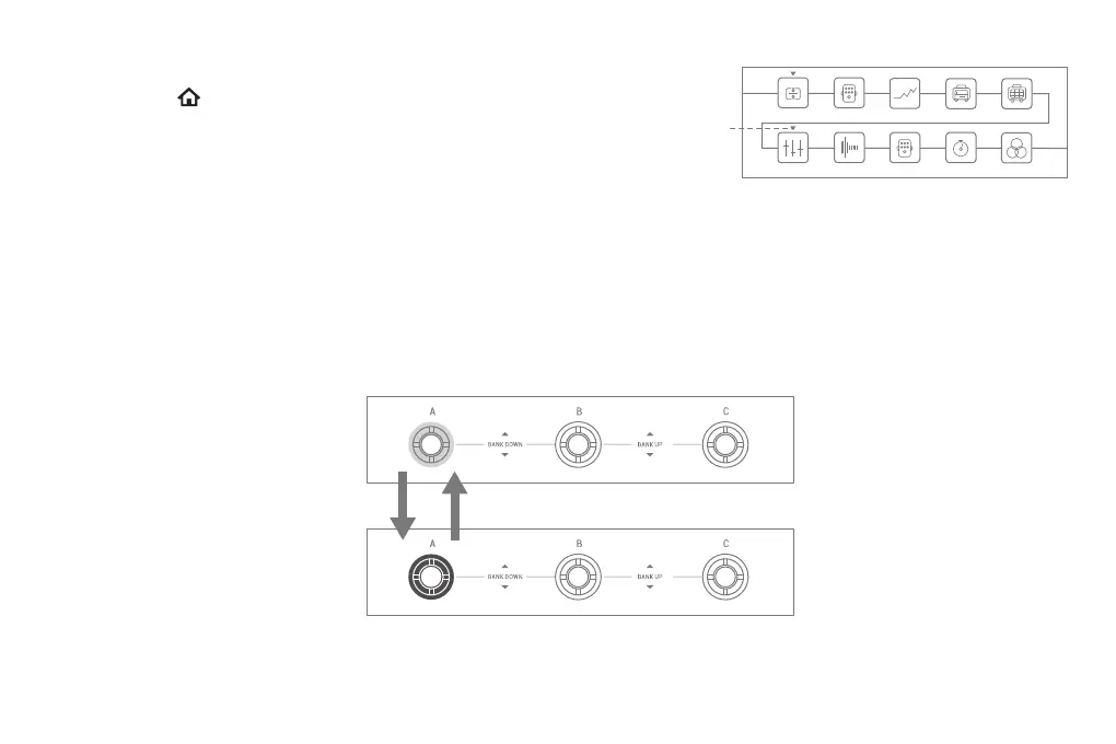 グループを切り替えられます。グループとプリセットが選定された後、フットスイッチが自動的にプリセット切り替えモードに戻ります。