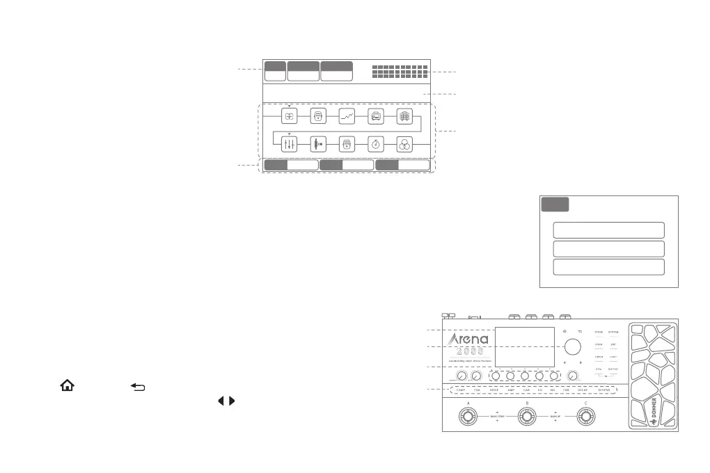 ④ 如果一个效果器的调节界面超过一个页面,轻触 按键可以翻页。