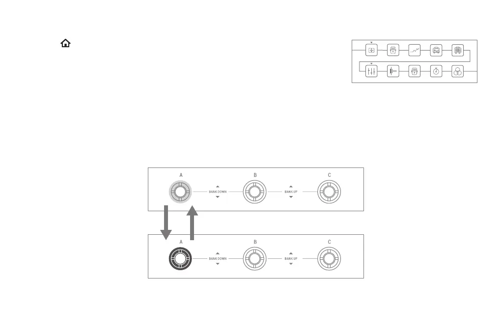 or B/C footswitch together can still switch the banks, and after the bank and preset are selected, it will automatically return to Preset Switching Mode.