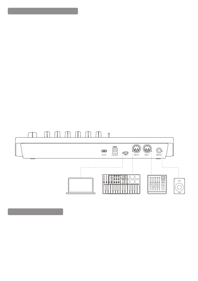 B1はMIDI汎用基準プロトコルを対応し、MIDIを通じてB1より外付けMIDIデバイスを制御し、また外付け