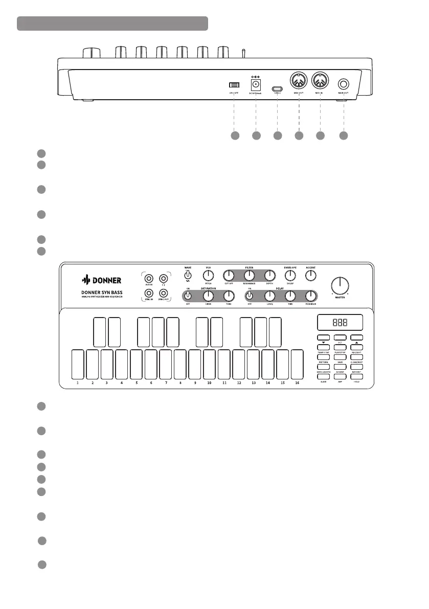MIDI IN: Connecteur d'entrée MIDI qui reçoit des messages MIDI et peut prendre en charge l'utilisation de