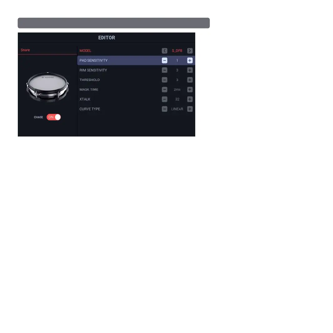 Il s'agit d'un contrôle spécifique permettant d'éviter que le fût sélectionné ne se déclenche lorsqu'un pad situé à côté de lui est frappé. Ce réglage doit être