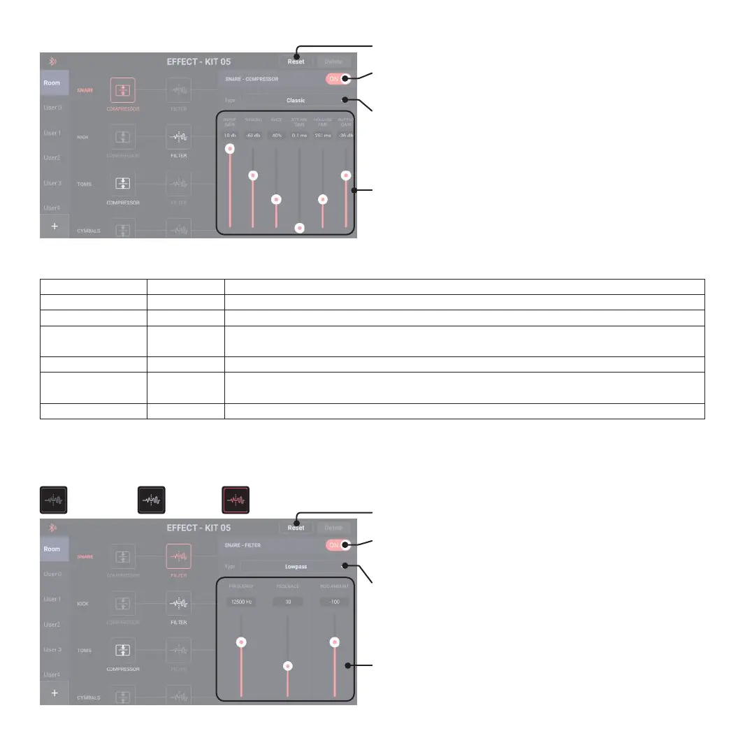 Das aktuell ausgewählte Effekt-Kit wird auf die Standardparameter zurückgesetzt.
