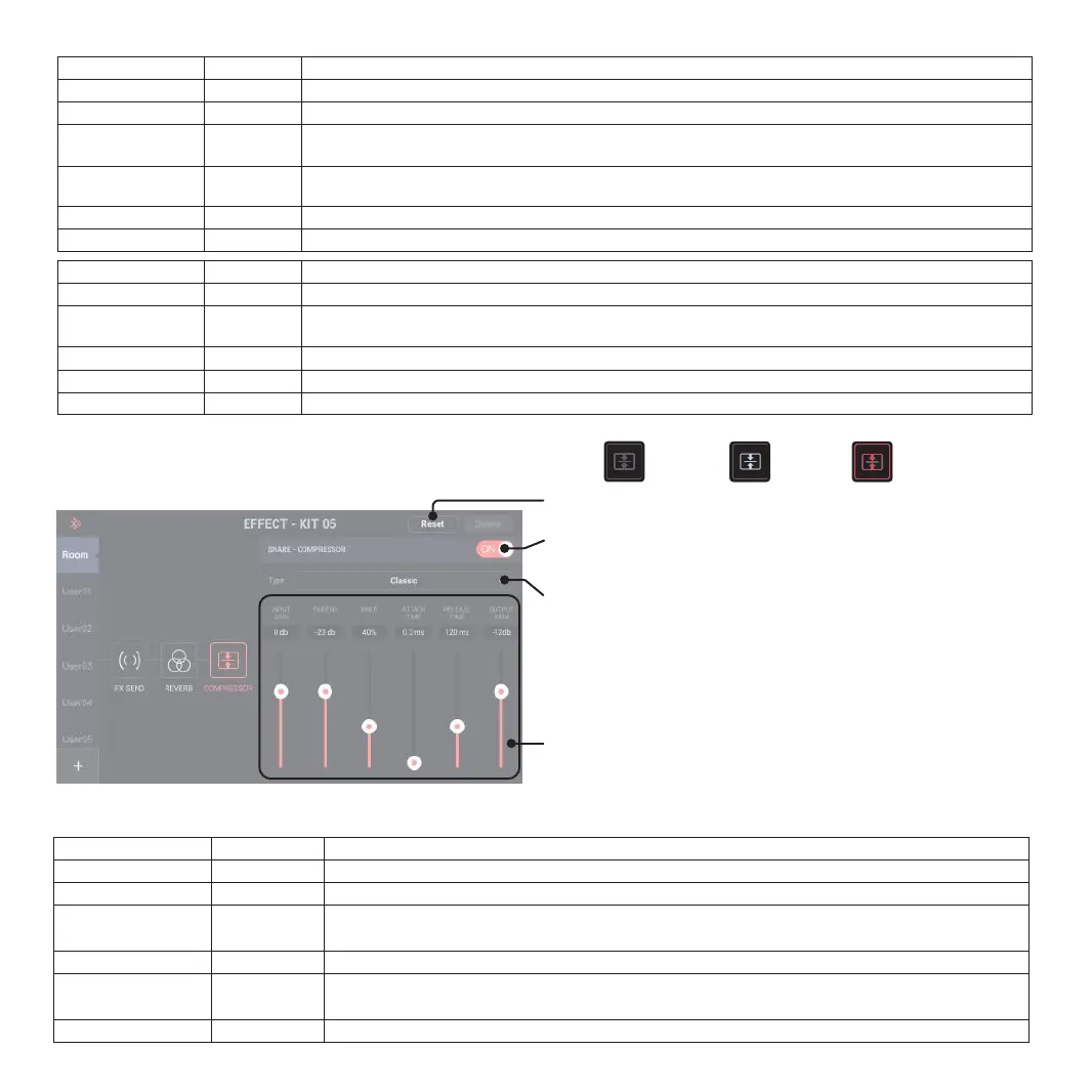 Das aktuell ausgewählte Effekt-Kit wird auf die Standardparameter zurückgesetzt.