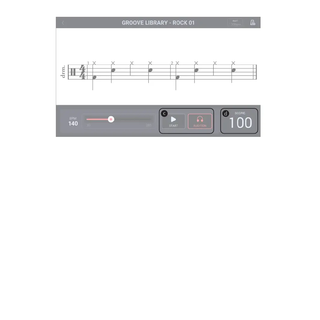 Drücken Sie die Taste „START“, um eine Übung zu starten oder zu pausieren; drücken Sie die Taste „AUDITION“, um die aktuelle Übung vorzuspielen.