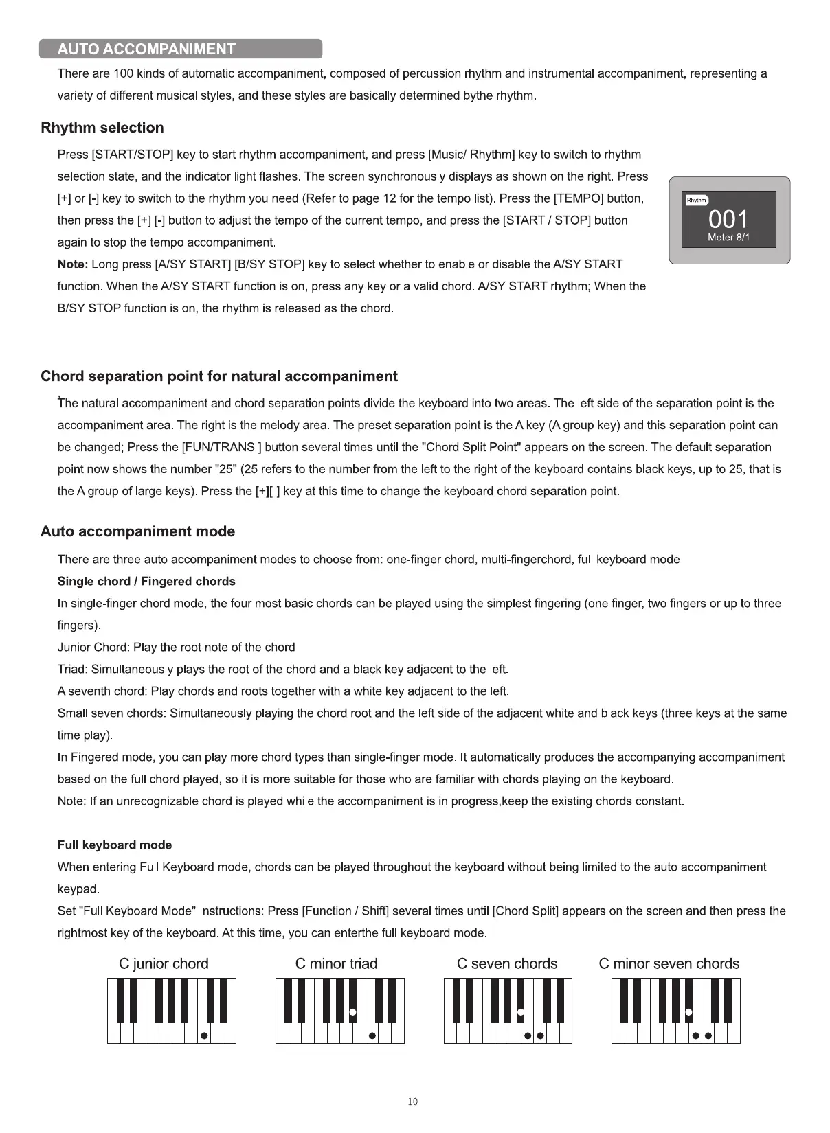 function. When the A/SY START function is on, press any key or a valid chord. A/SY START rhythm; When the