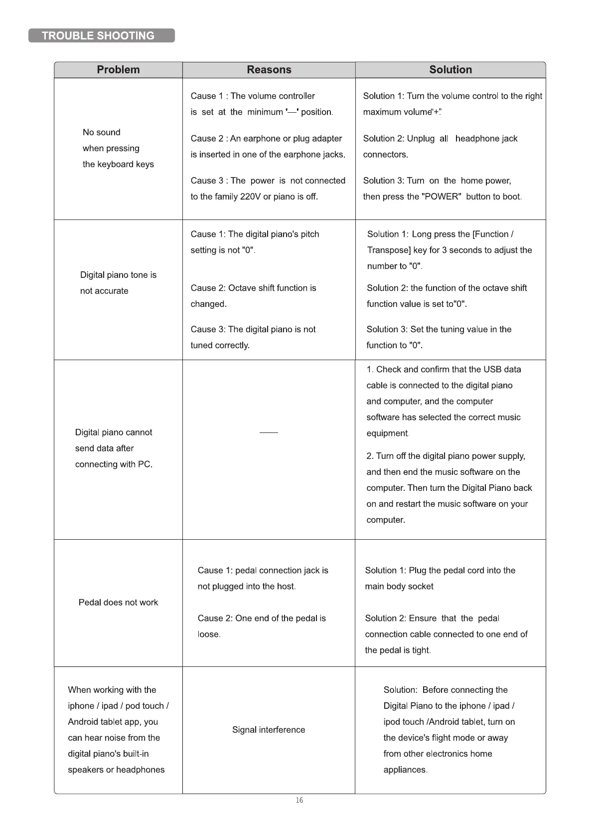 Cause 3: The digital piano is not
