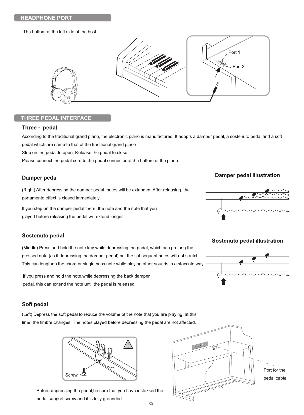 pedal which are same to that of the traditional grand piano