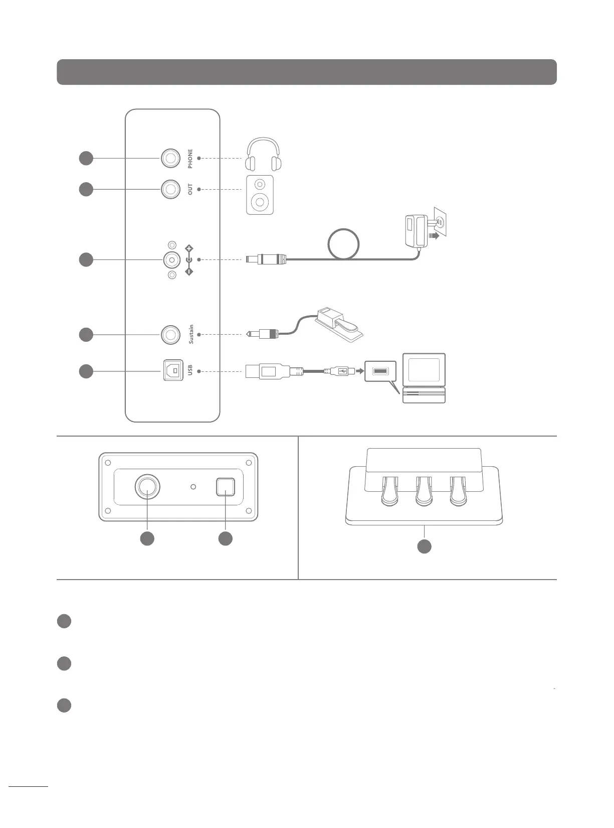 - Connecter le piano DDP-80PLUS au grand haut-parleur via cette prise.