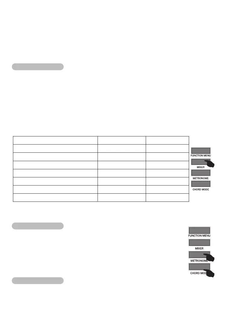 1. Pulse el botón “Mixer” para ingresar al menú de funciones de consola de sonido, la LCD