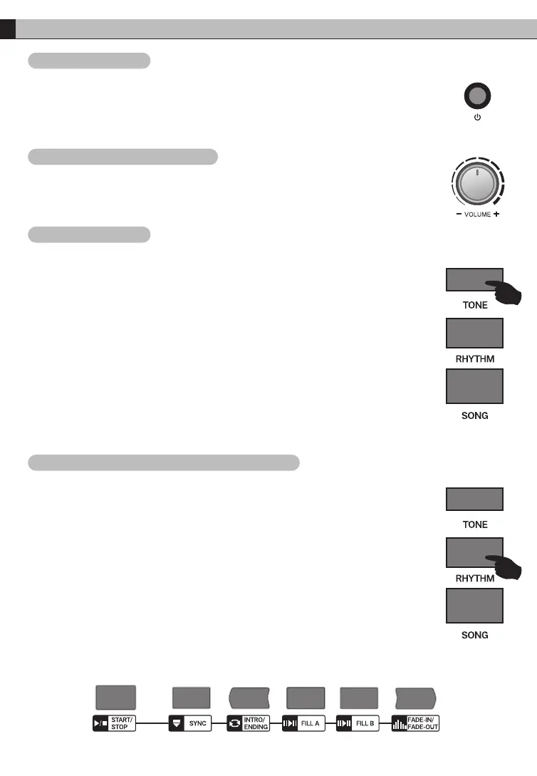 • Pressing 【RHYTHM】button to enter rhythm selection