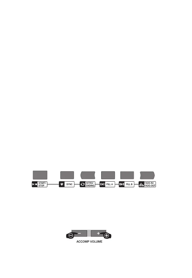 押して音量を調節し、画面にも表示されます。【ACCOM VOLUME+】と 【ACCOM