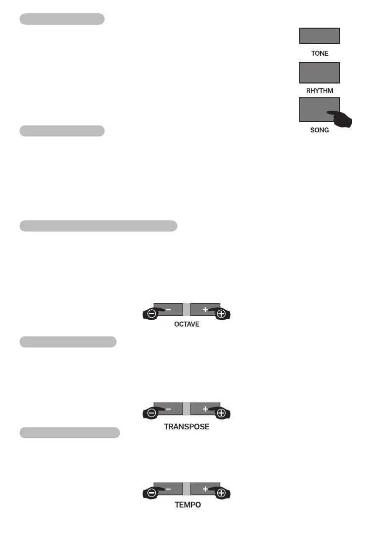 1.【SONG】を押してソングモードに入り、画面に「SONG」が点灯し
