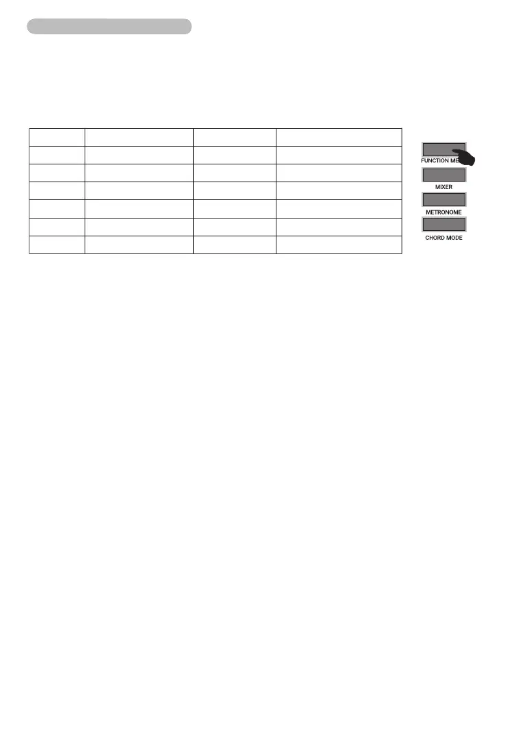 ・【 FUNCTION MENU】を繰り返して押して、コーラスタイプ設定を選び、画面に「003 Chr Type