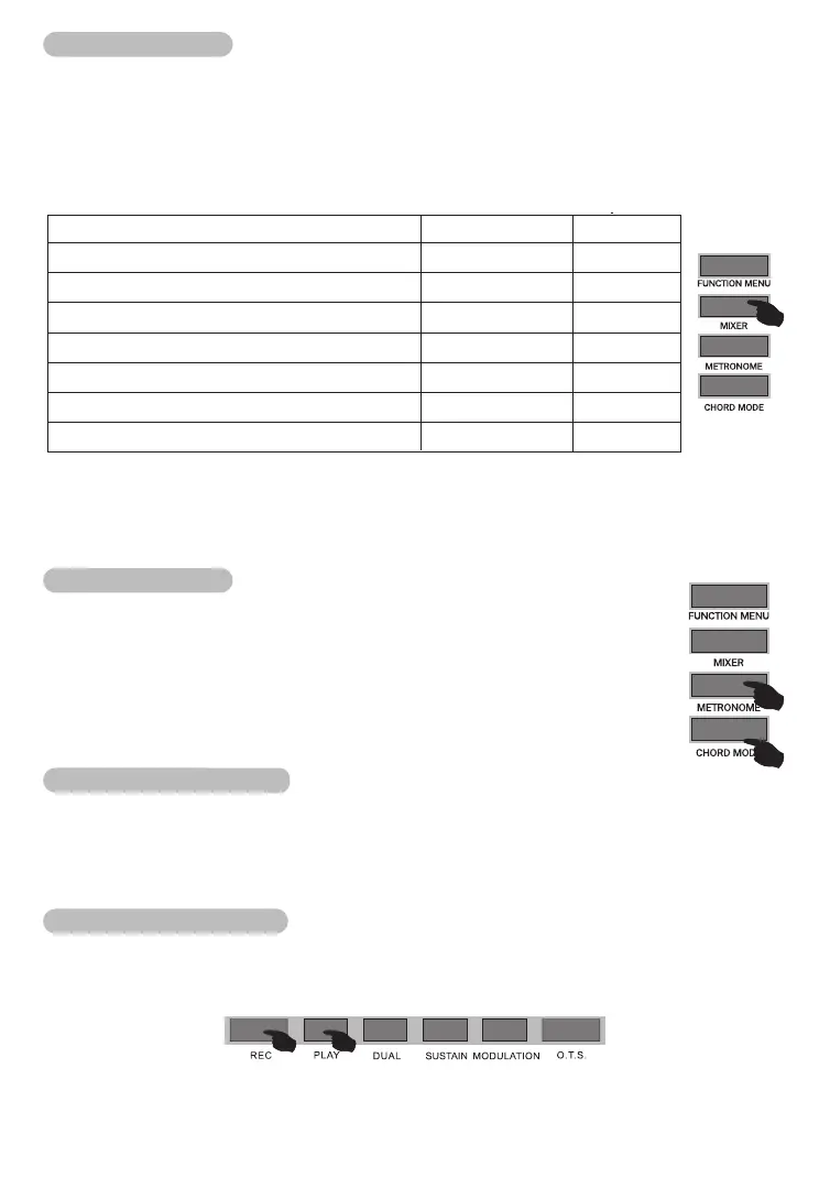 【CHORDMODE】を押して、自動伴奏をオンにし、A、B、Cコードモード(シングルフィンガー、フィ