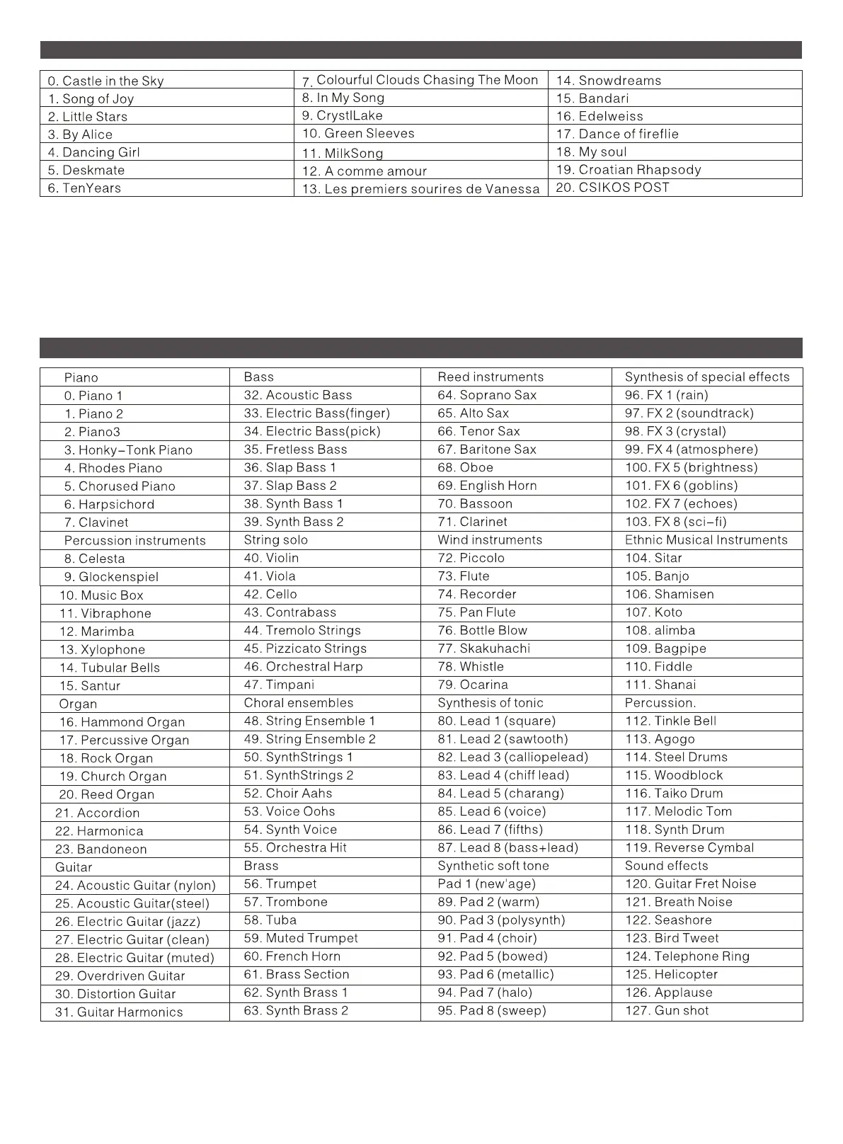 DEMO SONG TABLE