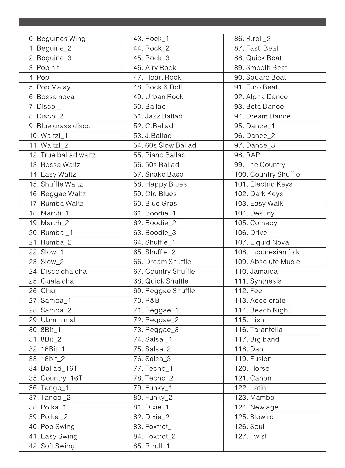 RHYTHM TABLE