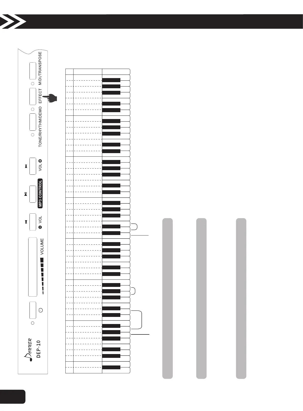1. Press the “EFFECT” button and press “ white d1” meanwhile in the Tone Effect zone to turn ON/OFF the Trill effect.